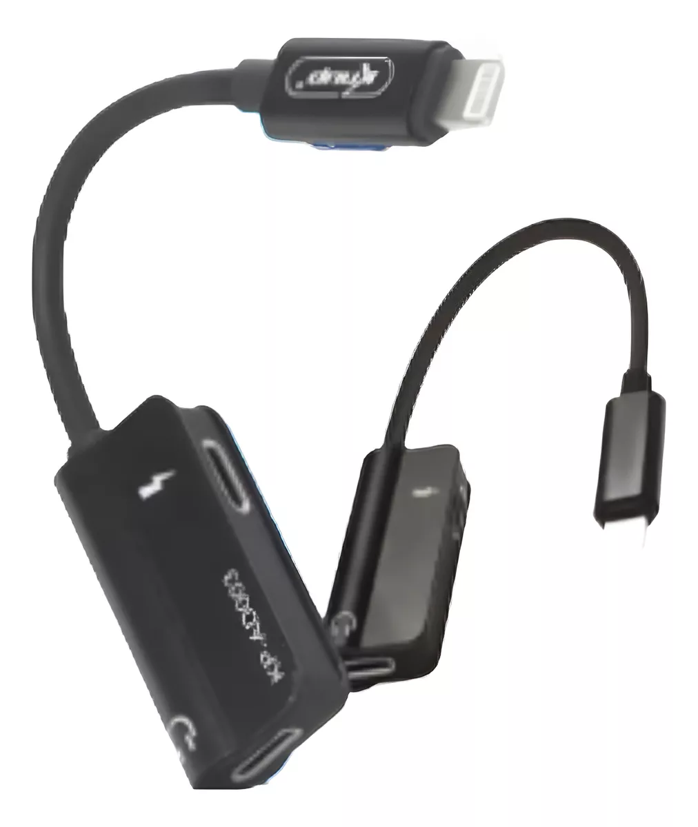Para utilizá-lo, basta conectar a ponta do cabo lightning na entrada do seu Iphone, depois conecte o seu carregador e seu fone diretamente no adaptador.