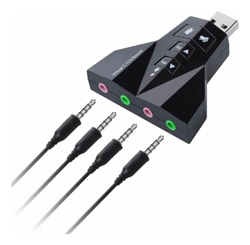 Adaptador Placa De Som Usb 7.1 Adaptador Áudio Notebook Pc Cor Preto’ é uma placa de som USB externa, portátil e fácil de usar. Basta conectar e usar.