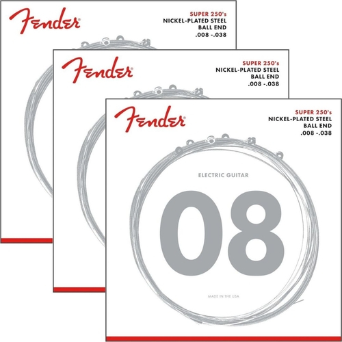 As cordas do Fender Super 250 combinam o alto rendimento e o som dinâmico do aço com o toque suave do níquel. Estes versáteis conjuntos de cordas de extremidade esférica são ideais para qualquer tipo de música, mas particularmente rock, blues e outros estilos com tom cortante e articulado.